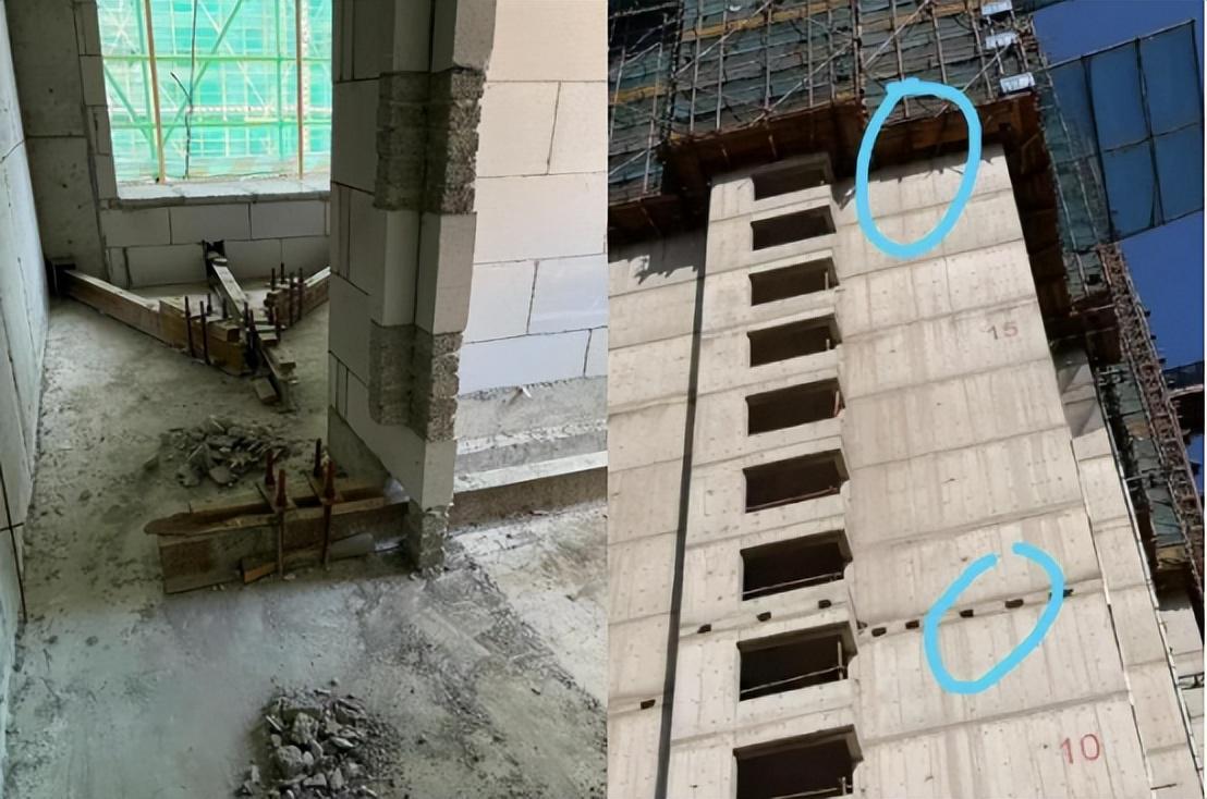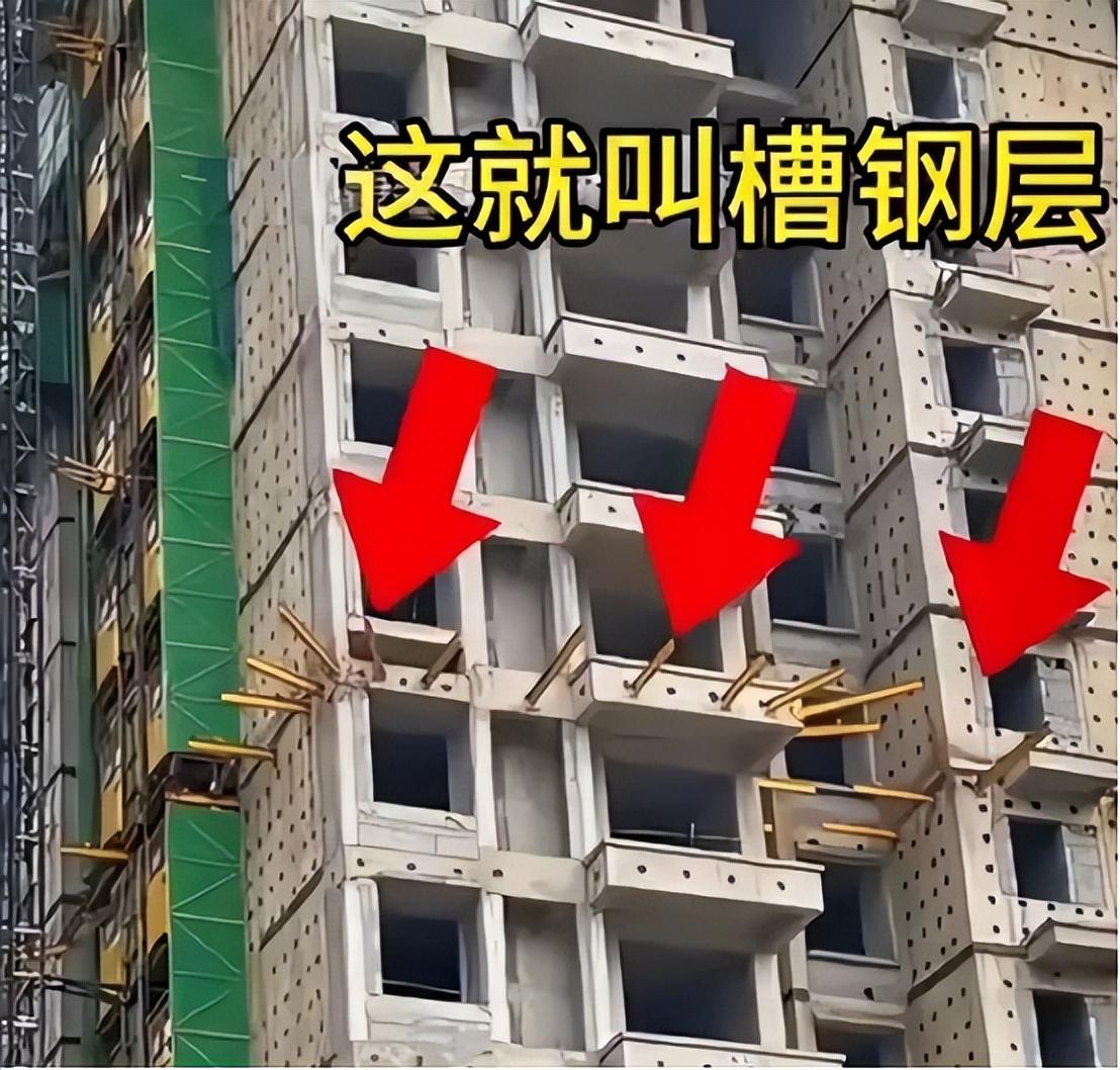 正在盖的楼盘见过吧?思没思过外墙的脚手架是怎样固定的?对,便是插钢槽固定的。等楼盖好了,再融合修补。